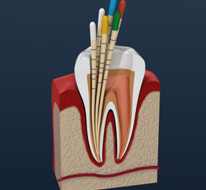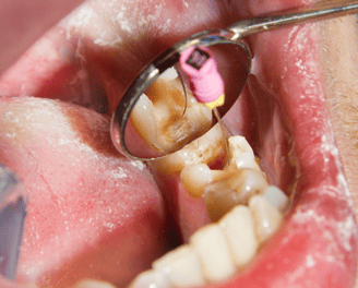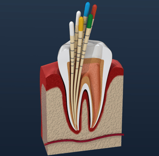 Inflamações ou infecções no canal que geram dor intensa e risco de perda do dente são tratados com limpeza e vedação interna, preservando o dente.
