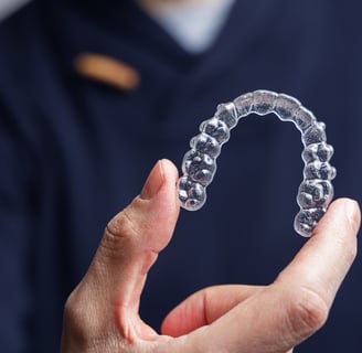 Dentes desalinhados que comprometem a mastigação e a confiança no sorriso são corrigidos por aparelhos fixos ou alinhadores, promovendo uma oclusão adequada.